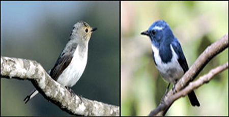 A pair of "Ultramarine Flycatchers". These were taken from the sitout terrace of the Old Bungalow.The male is blue and the female gray. This pair is nesting in the roof panel of the Old Bungalow on the left hand corner.